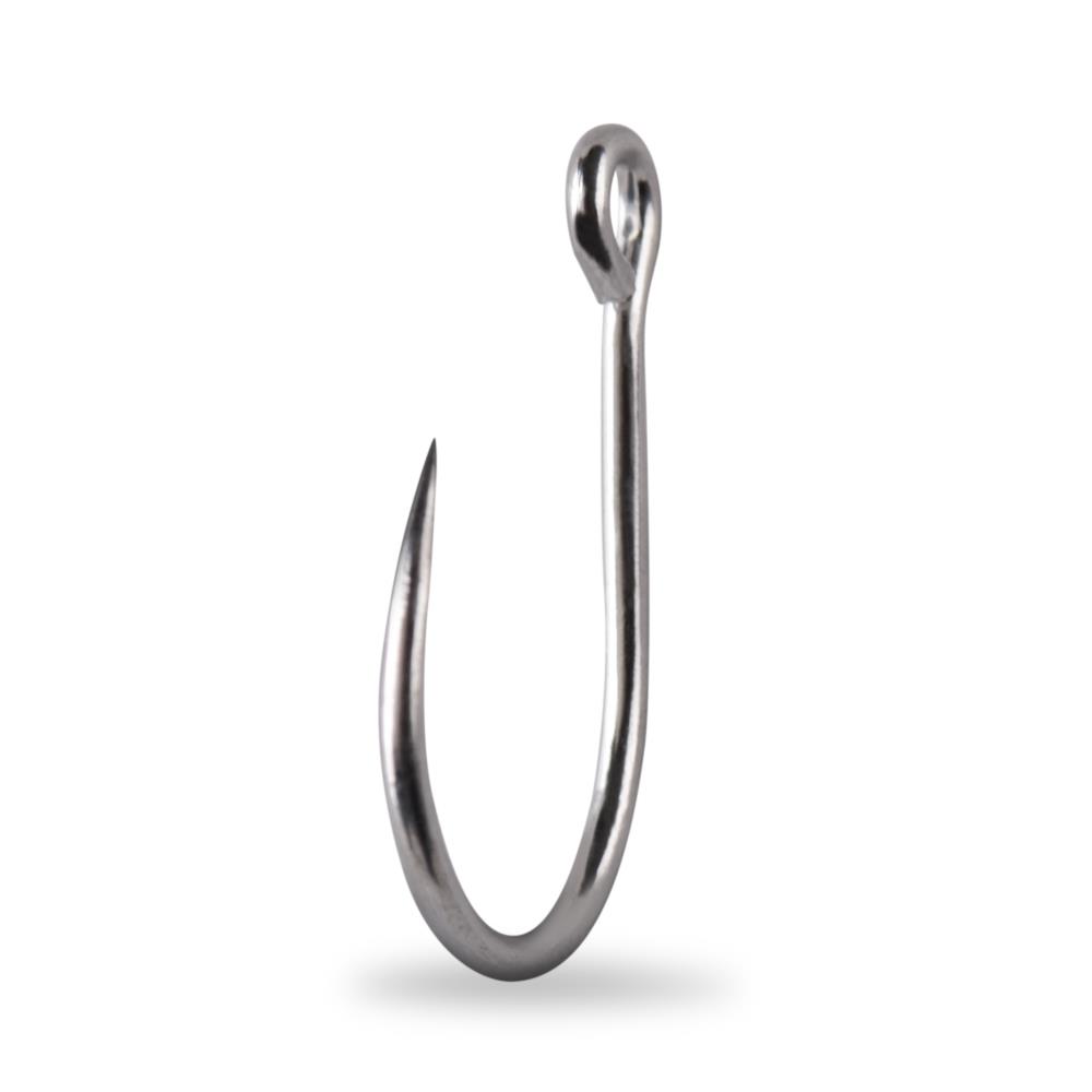 The Kaiju single hook features an amazing strength and power ratio. Extra wide bend for more secure hook-ups when targeting big, strong and fast saltwater species, such as Giant Trevally, Yellowfin or Dogtooth Tuna. The hook is a perfect substitute for treble hooks on lures. The in-line eye is designed to hang correctly when mounted under a big lure. The single hook is less likely to snag weeds. It is ideal for big lures, such as plugs and poppers.