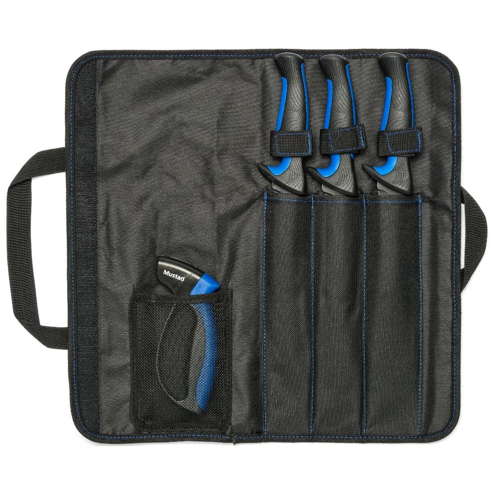 - Versatile set: The Mustad Knife Kit MT096 contains everything you need to prepare your fish professionally. With three sharp filleting knives in lengths of 7", 8" and 9", a practical hand sharpener and a robust storage bag, you are well equipped.
