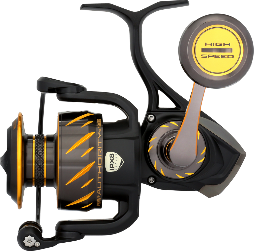 'The PENN® Authority™ is the new PENN® standard. Focusing on best-in-class smoothness and sealing, these reels will have a size and gear ratio for every scenario. Utilizing CNC Gear technology™, the precision-cut stainless steel gear train paired with the Dura-Drag™ system, will give you the power to tame anything from within the deep blue. The IPX8 sealed body and spool are top of the line, ensuring that no water will reach the internals, even if submerged. Whether fishing the creeks or in the blue water, the PENN® Authority™ sets a new standard for durability and performance.
