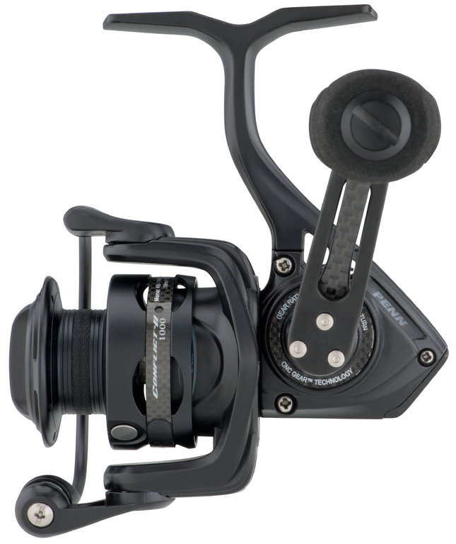 Die PENN Conflict II bietet dezente Änderungen der Optik, ein leichtes Design (die leichteste aller jemals von uns gebauten Spinnrollen) und eine seidenweiche HT-100 Bremse. Der RR30-Rigid-Resin-Rollenkörper und Rotor sind extrem leicht und sehr stabil. Im Inneren ist die neue Conflict II mit unserer CNC-Getriebe-Technologie und hochwertigsten Edelstahl-Kugellagern ausgestattet. Mit der Superline-Spule wird das Unterfüttern überflüssig, da die Gummierung das Durchrutschen geflochtener Schnüre verhindert.
