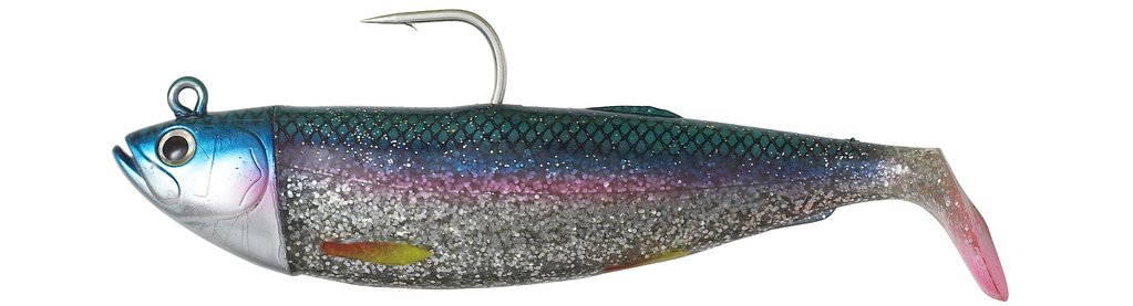 These giant softlures are designed primarily for big saltwater game fish – like Halibut and giant cod. We have taken offspring in the Atlantic herring, the most important prey fish for the Atlantic saltwater predators. The lures have been designed in co-operation with some of Scandinavia’s most experienced saltwater big fish guides and we have worked to achieve superior swimming action, perfected customized Japanese forged hooks with unparalleled hooking ability and strength. Our unique “under skin” painting technique enables us to make each lure look incredibly lifelike. The chosen colours are based on input from the most successful guides in the Nordic saltwater guiding business. Cutbait herring, a superior big fish lure!