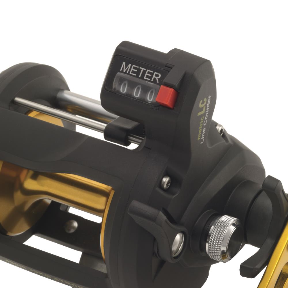 The METRIC line counter always shows the running length of the line that has run off the reel. The gear of the line counter is very smooth-running, which prevents the running line from slowing down. It is therefore not necessary to use higher lowering weights.
