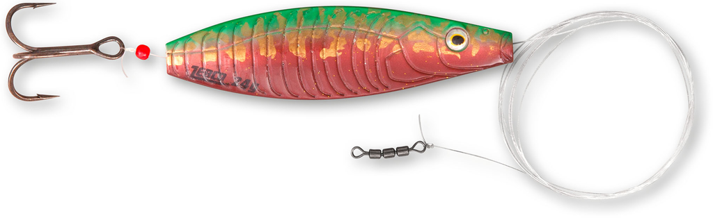 The new Zebco Bulben inline spoons show that forward-looking developments such as "lead-free" and "inline line guidance" do not have to be unattractive! The in-line guide is internally protected with a Teflon tube, so that this spoon can be fished even on thin leaders, without the rotating spoon damage the leader. In addition, the bait is delivered with a finished Fluoro-carbon leader and a high-quality carbon steel treble hook in a suitable size. Of course, the target fish for this bait is sea trout, but the seducer is also great for modern tuna, sea bass and freshwater rapeseed fishing.
