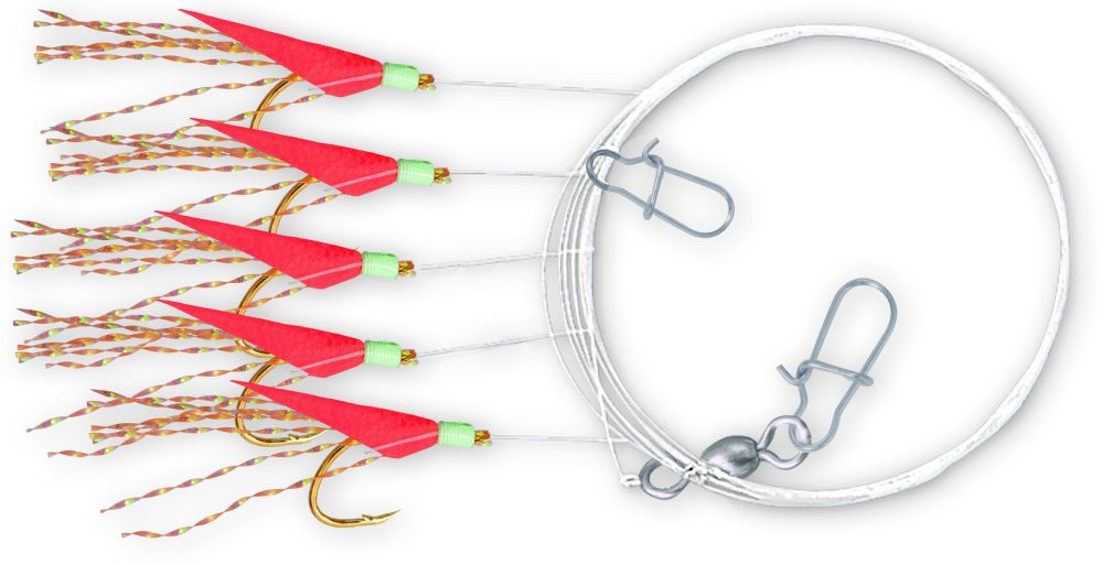 When fishing for herring, it all depends on the right leader. This means that some anglers always catch significantly more fish than others. The Holografix leader combines all the important properties to ensure that the catch bucket is quickly filled. Sharp, sturdy hooks tied with real fish skin and additional holographic threads make this leader perfect. There are three different colours with 5 hooks each to choose from. The hooks used are size 10 or 8.