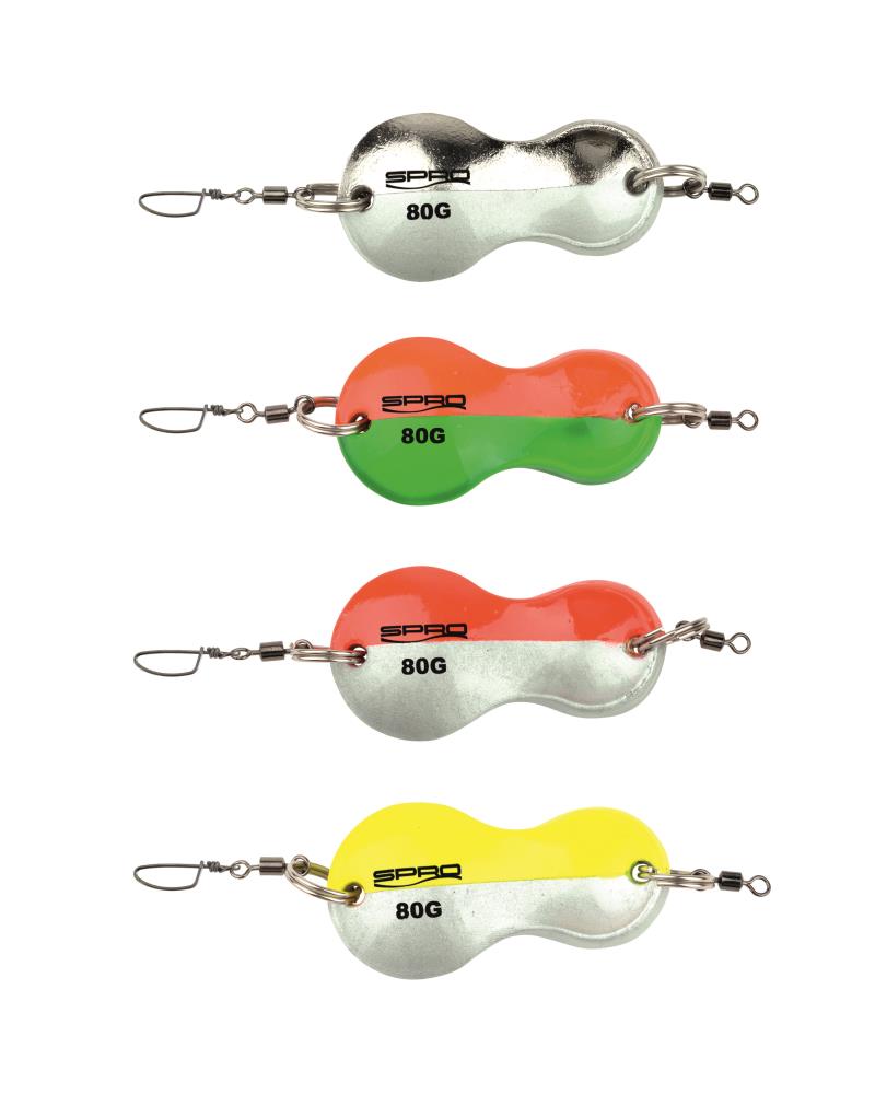 These butt spoons are available in different colours and weights. In addition to the usual snap rings, there is a swivel at the top end and a swivel with a hanger at the bottom end. This means you only need to attach your trailing leader.