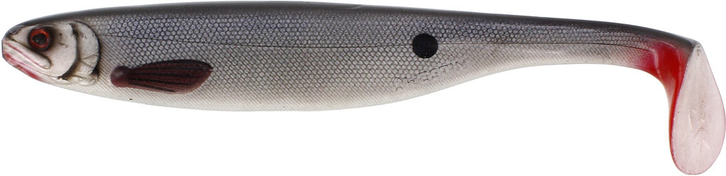 Dieser XL-Gummi stellt andere Gummiköder locker in den Schatten. Der ShadTeez ist einem lebenden Fisch täuschend echt nachgebildet und zweifach mit einer klaren Beschichtung überzogen. Dadurch sieht die Oberfläche aus, als wäre sie mit echtem Fischschleim bedeckt. Der hohe Körper, die schlanke Schwanzwurzel und der große Schaufelschwanzteller erzeugen ein Bewegungsmuster bei dem der Köder stark um die eigenen Achse rollt und dabei die Flanken immer wieder aufblitzen lässt - ideal für große Raubfische. An leichtem Jigkopf oder ohne Zusatzgewicht langsam entlang der Wasserpflanzen im Flachwasser geführt oder an schwerem Jigkopf - der Köder imitiert einen leicht verwundeten panischen Fisch. So oder so wird der Rekordfisch zuschlagen!