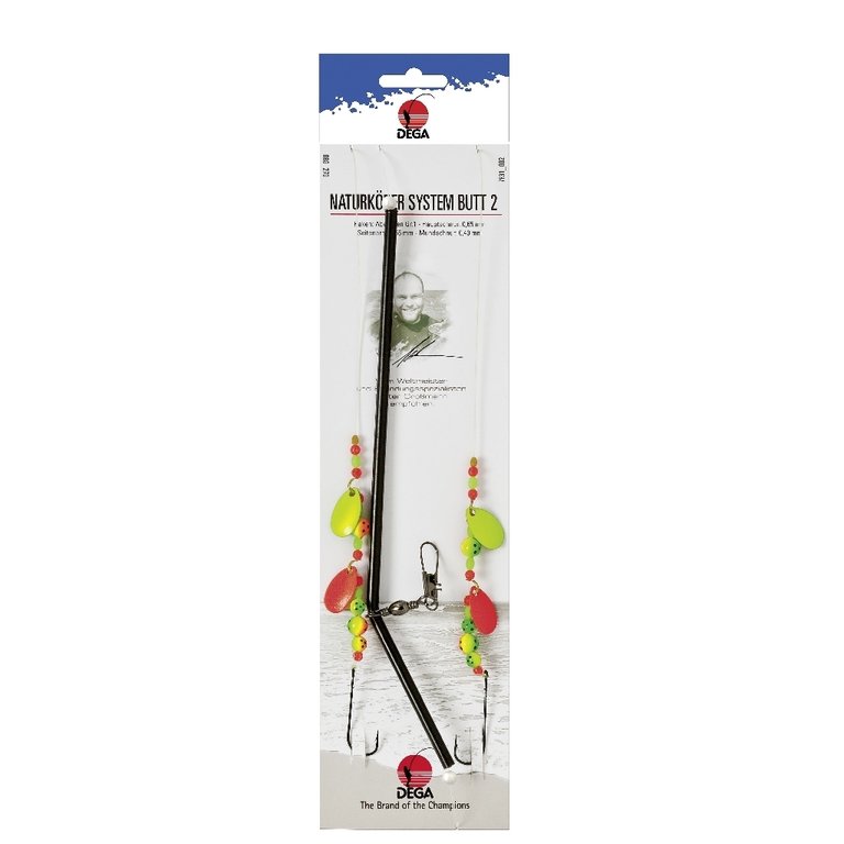 Diese Naturköder-Systeme sind konzipiert für die moderne Angelei vom Kutter oder Boot. Sie sind handgefertigt und von Qualitätskontrolleuren geprüft. Es gibt jeweils zwei Modelle für die Angelei auf Butt oder Dorsch. Die Vorfächer besitzen jeweils zwei Haken der Größe 1, eine Schnurstärke von 0,60mm/0,50mm, ein Running Boom und verschiedenfarbige Spinnerblätter und Lockperlen.