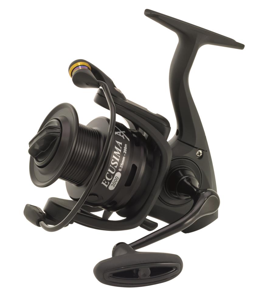 Seit jeher steht der Name ECUSIMA für ein sensationelles Preis-Leistungs-Verhältnis. Die ECUSIMA AX ist ausgestattet mit hochwertigen Edelstahl-Kugellagern und einem Bremssystem, das in dieser Preisklasse Maßstäbe setzt. Kohlefaser-Bremsscheiben sorgen für einen absolut ruckfreien Schnurabzug im Drill. Angenehm leicht liegen die neuen ECUSIMAS in der Hand. Der satte sanfte Lauf erinnert an Rollen in einer deutlich höheren Preisklasse. Die Gummischürze auf der Spule verhindert das Durchrutschen geflochtener Schnur auf dem Spulenkern.
